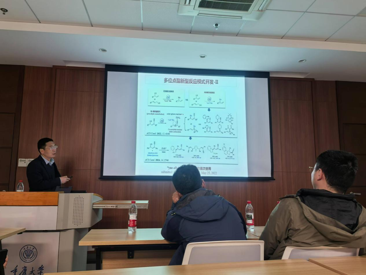 2025年3月31日下午,在重庆大学虎溪校区理科楼LA108,中国科学院福建物质结构研究所房新强研究员应邀到学院开展了主题为“挑战与机遇—基于多位点羰基分子的催化转化”的学术讲座。本次讲座由化学化工学院李杨教授主持,李葆生研究员、蔡云飞研究员、夏勇研究员等多名师生参加。