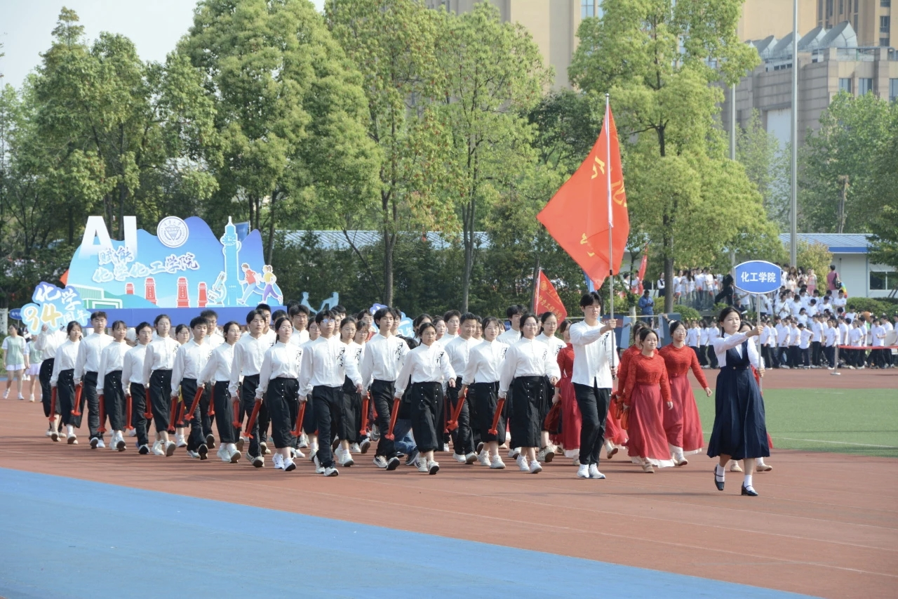 在运动会开幕式上,化学化工学院方阵步伐整齐、精神饱满,以有序的队列和昂扬的姿态,充分展现了学院学子严谨务实、积极向上的精神风貌。方阵带来的节目表演同样精彩纷呈,赢得现场师生一致好评。